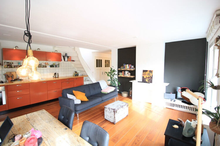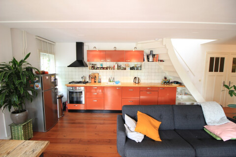 Spacious bright 85m² and 2-bedroom corner apartment for rent in Amsterdam old West, close to the Mercatorplein. Available for 12 months. There is an open kitchen with built-in appliances. The bathroom is located at the second floor and is recently renovated. As bonus there is a huge sunny roof terrace! Shops, restaurants and bars can be found within minutes walk. Public transport connection is perfect, tramlines are on walking distance.