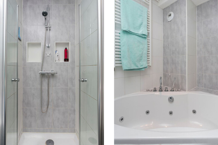 - Bathroom with walk-in shower + massage bathtub