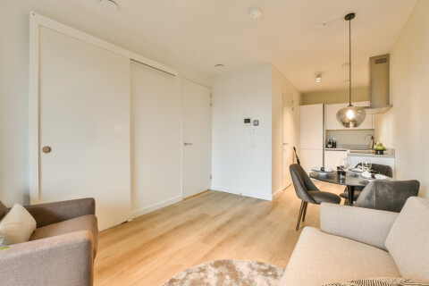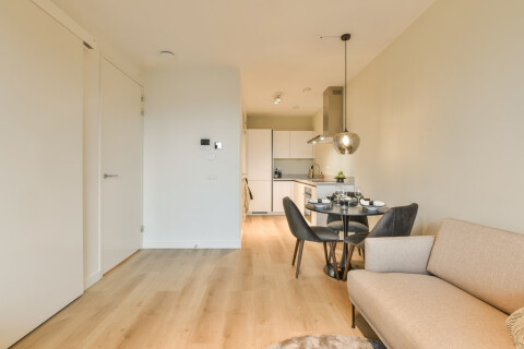 This apartment is turn-key, "ready to move in". This apartment has been just completed and decorated in September 2022. It has an open kitchen with dining, living room, washing-storage room, a modern bathroom and a spacious outdoor seating area, overlooking the water. The living room has large windows and high ceilings, a large sliding door opening to the balcony, giving it a spacious feel. In this newly developed area close to the city center both commercial premises and living-working units have been planned. In short, wonderful living in the “Hudson Yards” of Amsterdam. These stylish and sustainable premises have been built on Oostenburg, close to the Central Station and well connected by public transport. The apartment-building is close to the bustling VOC quay, where you can grab your morning coffee, terraces and restaurants. Besides, you can easily cross to the Czaar Peterstraat with numerous specialist shops.