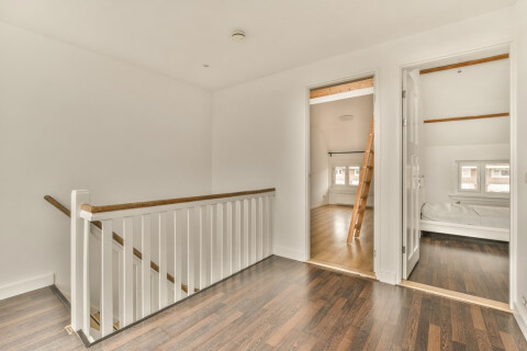 Middels de gedeelde entree toegang tot het appartement op de derde verdieping. Je komt binnen in de centraal gelegen hal, welke de verdere toegang verschaft tot de woonkamer, badkamer, twee slaapkamers en keuken. Via de inpandige trap toegang tot de vierde verdieping met overloop, twee slaapkamers en toegang tot het dakterras.