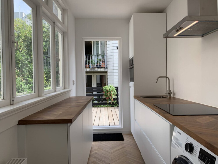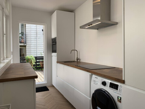 De keuken is volledig voorzien van alle benodigde apparatuur (4 pits inductieplaat, afzuiger, wasmachine/droger, ijskast/vriezer).