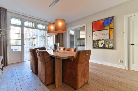 Very bright and spacious split level apartment with balcony and roof terrace. The upper house is located in Amsterdam Oud-Zuid near the Beatrix Park, in 2009 tastefully fully renovated.