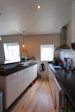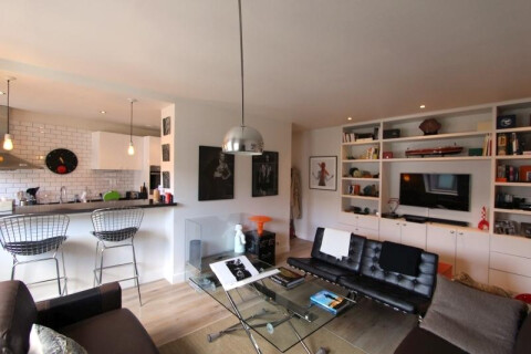 Appartement op de 2e verdieping van een mooi gebouw, prachtig 3-kamerappartement volledig gerenoveerd bestaande uit: inkomhal met kasten, woonkamer met bibliotheek, ingerichte keuken, gang, slaapkamer, badkamer met Italiaanse douche in gewaxt beton, aparte wc.