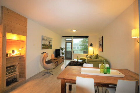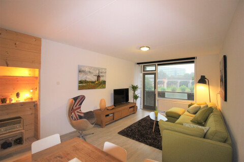 Cozy furnished 3-room apartment for rent in the upcoming area of Amsterdam South-East, very close to the metro station Kraaiennest. Located on the second floor reachable by elevator. The apartment is located close to the shopping centre De Kameleon and easy to reach by public transport and car. Great view with lots of green and water in front of the building