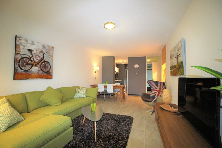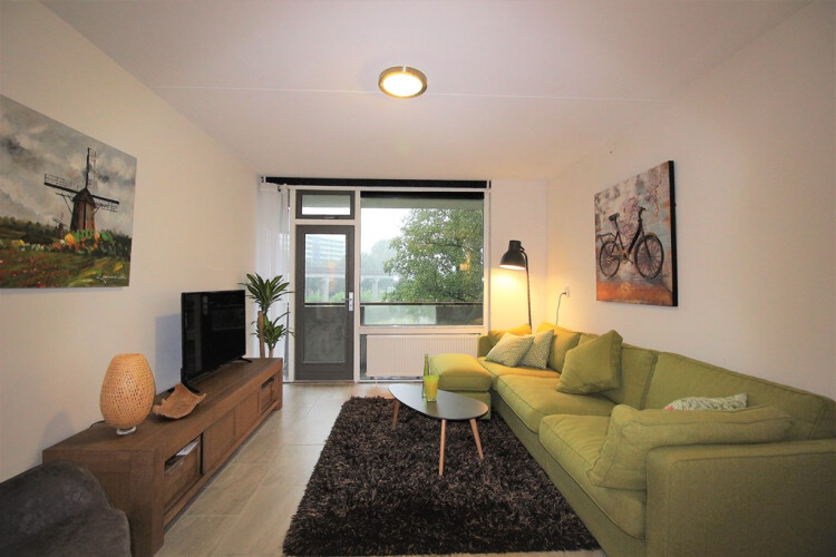 Cozy furnished 3-room apartment for rent in the upcoming area of Amsterdam South-East, very close to the metro station Kraaiennest. Located on the second floor reachable by elevator. The apartment is located close to the shopping centre De Kameleon and easy to reach by public transport and car. Great view with lots of green and water in front of the building