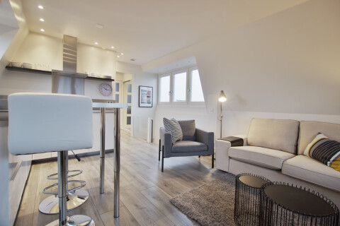 Entrance on the fourth floor with living room overlooking the canals, open kitchen with all built-in appliances. Bedroom at the rear with double bed and built-in wardrobe. Bathroom with toilet and shower.