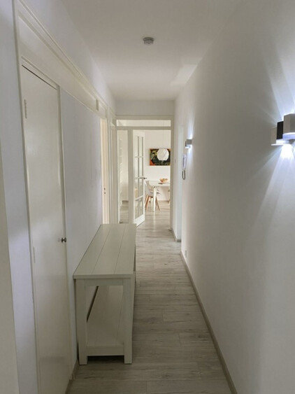 Entree appartement: ruime hal met een vaste kast, meterkast en toegang tot bijna alle vertrekken. Lichte woonkamer met een deur naar het zonnige balkon op het zuiden. Dichte en moderne keuken in hoogglans wit, voorzien van een 4-pits gaskookplaat met afzuigkap, oven, vaatwasmachine, koelkast en deur naar het balkon. Twee slaapkamers, waarvan één met inbouwkasten. Een werkkamer te bereiken via de woonkamer, met een koel-/vriescombinatie en vaste kast t.b.v. de boiler. Moderne badkamer in zwart/wit en voorzien van een grote inloopdouche, dubbel wastafelmeubel en aansluitingen voor de wasmachine en droger. Separaat toilet in zwart/wit met een wandcloset en fonteintje
