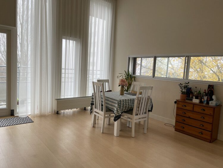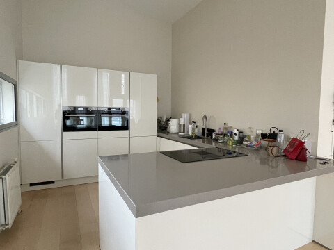 This spacious penthouse on 4th floor, has three bedrooms and a covered parking inside. It has two big bedrooms and one smaller room that is used as an office now. The living room is very spacious with high ceilings, overlooking the greens and relieves nice sunlight, also has a large balcony along side the whole room. The kitchen is a new modern open kitchen with dishwasher oven, 2 microwaves and wijn cooler. There is a separate laundry room with wasmachine and dryer. There is also some furnishings provided along with the appartment like furniture etc.