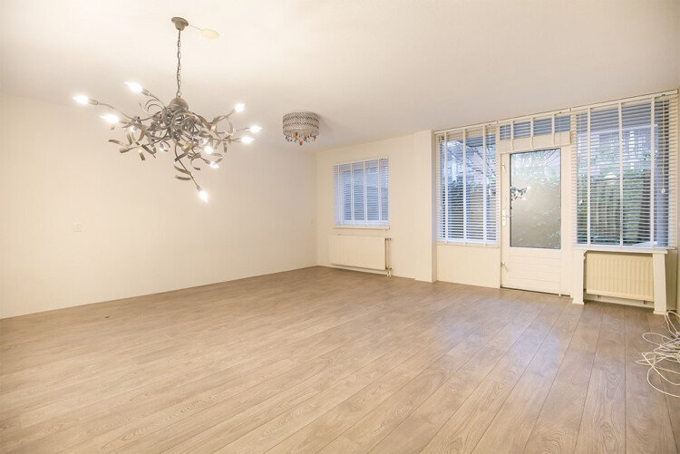 Ruime woon / eetkamer met open keuken met toegang tot de voortuin. Keuken is van alle gemakken en inbouwapparatuur voorzien.