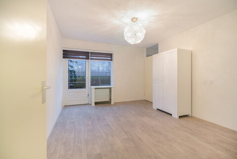 Gestoffeerde begane grond woning met 2 connecting slaapkamers een voortuin met fietsen ingang en een exceptioneel ruime achtertuin van 165m2.