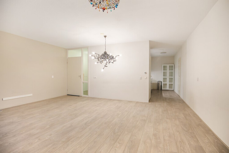 Ruime woon / eetkamer met open keuken met toegang tot de voortuin. Keuken is van alle gemakken en inbouwapparatuur voorzien.