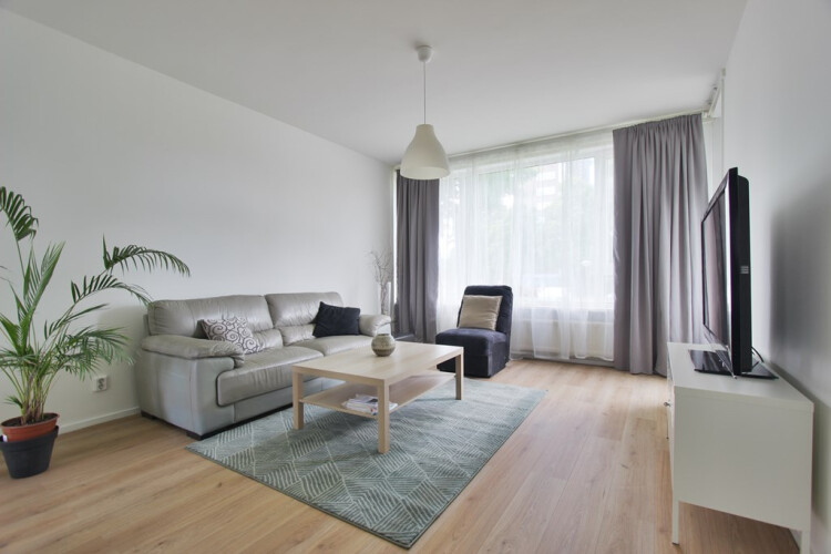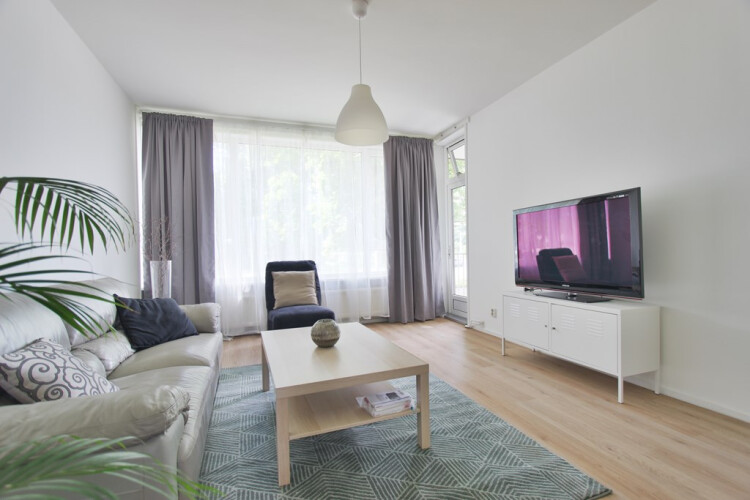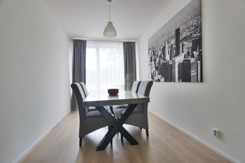 Furnished apartment on Lou Jansenplein. Located within walking distance of Plein 40-45, with three supermarkets, many different restaurants and a lively market from Tuesday to Saturday. Also sports fields, parks and public transport are perfectly accessible. Nature reserve the Bretten is just minutes away; here live wild animals and breed all kinds of birds, perfect for a lovely walk. In addition, the Sloterpark with the Natureluur, swimming beach and petting zoo is nearby. Sloterdijk Station is located approximately 7 minutes by bike and through the highways N200, A10 and A5 you can quickly leave the city.