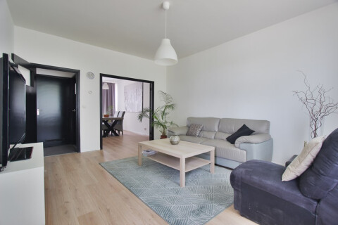 entrance hall, main bedroom with double bed and wardrobe with access to balcony situated east. Kitchen with appliances and second balcony situated west. Bathroom with shower, toilet, washbasin with furniture. second room equipped as a dining room. Spacious living room with large windows creating a lot of natural light in the apartment. From living room also access to the balcony situated east. ground floor separate storage.