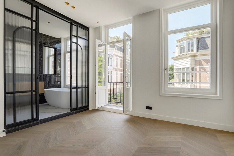Alle appartementen hebben een hoogwaardige afwerking gekregen en een compleet eigen stijl. De stijl is ontworpen door Heyligers Architects en kan het beste worden omschreven als ‘Amsterdam chic meets Scandinavisch minimalisme’. Een stijl die staat voor veel details, lijstwerk en strakke lijnen, voor natuurlijke materialen, minimalisme en voor serene rust. In de appartementen zijn veel lichte tinten gebruikt, die worden gecombineerd met donkere, stalen puien. In de stalen pui is – in tegenstelling tot normaal, helder glas – geribbeld glas toegepast, wat een bijzondere sfeer creëert. De licht eiken vloer die is gelegd in een Hongaarse punt, de witte paneeldeuren, het lijstwerk rondom de ramen en deuren en de klassieke plinten zorgen voor een luxe uitstraling. In de appartementen is met alles rekening gehouden. Zo zijn deze voorzien van een walk-in closet en van nissen die ruimte bieden aan decoratieve kasten.