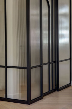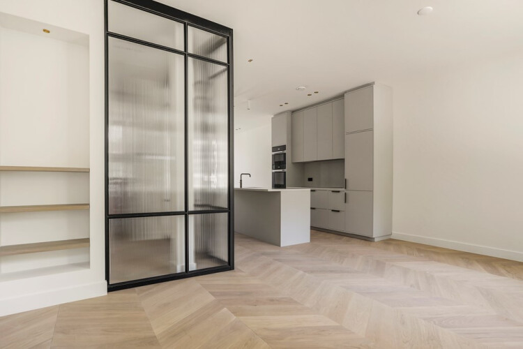 Alle appartementen hebben een hoogwaardige afwerking gekregen en een compleet eigen stijl. De stijl is ontworpen door Heyligers Architects en kan het beste worden omschreven als ‘Amsterdam chic meets Scandinavisch minimalisme’. Een stijl die staat voor veel details, lijstwerk en strakke lijnen, voor natuurlijke materialen, minimalisme en voor serene rust. In de appartementen zijn veel lichte tinten gebruikt, die worden gecombineerd met donkere, stalen puien. In de stalen pui is – in tegenstelling tot normaal, helder glas – geribbeld glas toegepast, wat een bijzondere sfeer creëert. De licht eiken vloer die is gelegd in een Hongaarse punt, de witte paneeldeuren, het lijstwerk rondom de ramen en deuren en de klassieke plinten zorgen voor een luxe uitstraling. In de appartementen is met alles rekening gehouden. Zo zijn deze voorzien van een walk-in closet en van nissen die ruimte bieden aan decoratieve kasten.
