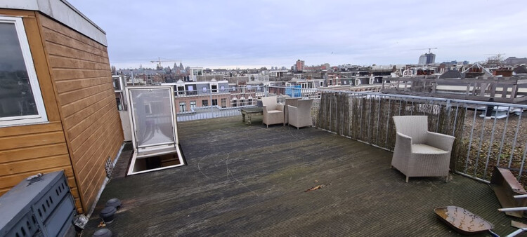 Nice renovated 2 bedroom apartment in the cozy pijp on the top floor with a fabulous Rooffterrace overlooking the whole city +/- 45m2.