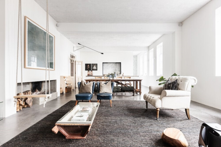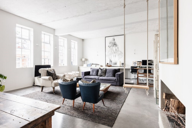 In this fantastic loft apartment, the old industrial elements have been preserved and with a mix of natural materials, a perfect balance has been created between space, design, and functionality. The interior is hand-picked by the owner, an interior stylist.