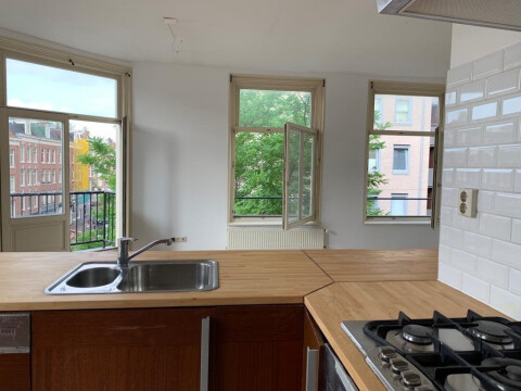 Ruim en licht dubbel bovenhuis in Amsterdam oud-west met balkon.