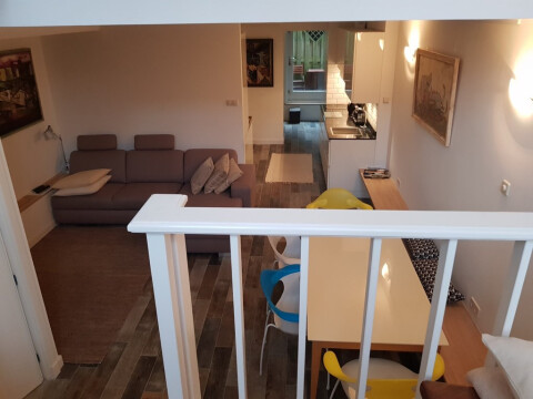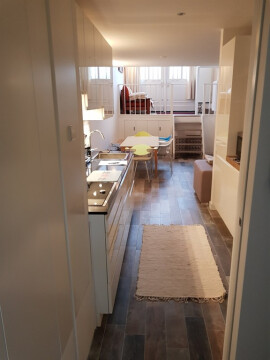 Super mooi en strak nieuw gerenoveerd appartement op 100 meter van het centrum, patio, woonkamer, open keuken met alle apparatuur, badkamer met regendouche met bidet en toilet en wastafel. Stenen vloer met vloerverwarming lijkt op parket. Was / droogcombinatie.