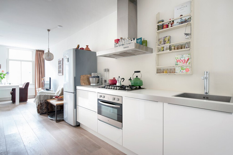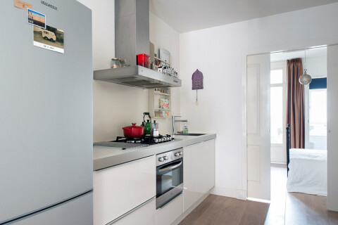 Cozy furnished 1-bedroom apartment for rent in the popular area ‘Old West’ in Amsterdam. Located on the 1st floor reachable by stairs. The apartment is located close to supermarkets, restaurants, bars etc. and is easy to reach by public transport and car.
