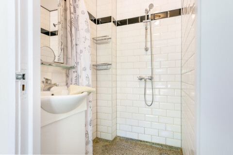 Lay-out: Ground floor, living room with open kitchen (incl. cutlery), dishwasher, combi microwave/ oven, fridge, freezer. Master bedroom with a king bed and access to the south facing garden, en suit shower, separate toilet, a separate storage room.