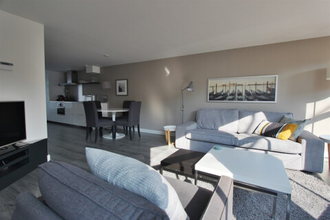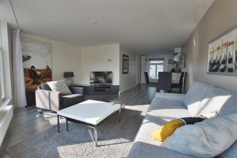 Communal entrance and stairs. The property is located on the first floor. Entrance hall, which has access to all rooms. At the front, the bright living room with panoramic views of the canal. Modern kitchen including a stove with oven, a dishwasher. Also on the back, the bedroom with the adjacent storage / closet and terrace. The bathroom has a bathtub and sink. The house has a beautiful wooden floor.