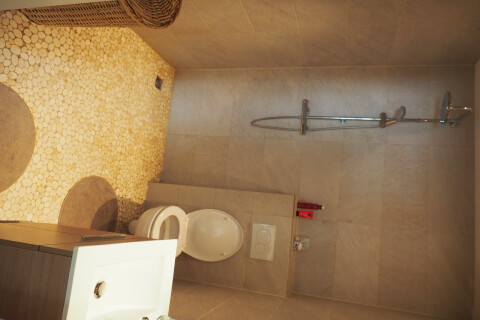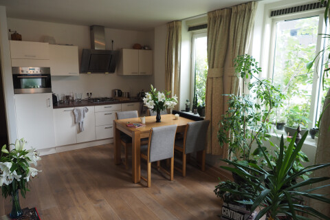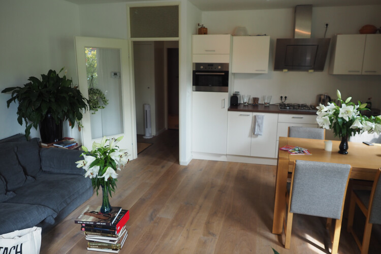Spacious bright living room and open kitchen with wood floor. The kitchen is equipped with the following appliances: dishwasher, washing machine, fridge, 4 burner gas hob and oven. Via the hall you reach a large beautiful bathroom and separate bedroom. In the bedroom are a spacious closet and large bed.