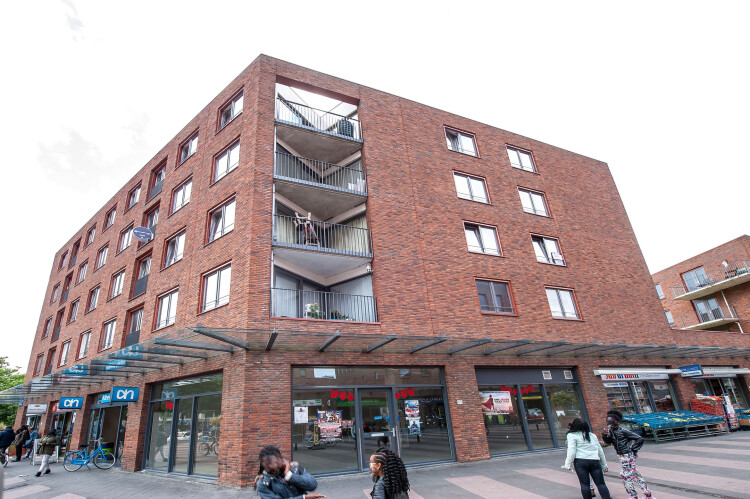 Het 4-kamerappartement ligt op de tweede verdieping van het appartementencomplex De Ganzenpoort in de G-buurt in Amsterdam Zuidoost.