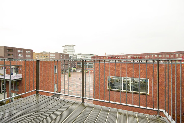 Ruime woonkamer met Frans balkon, moderne half-open keuken (v.v. diverse inbouw apparatuur); toegang tot het zonnig balkon (Zuidwesten), interne berging, apart toilet