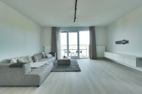 Entrance hall with access to main bedroom, second bedroom and bathroom, separate toilet, spacious living room with lots of windows creating a nice entrance of natural in the apartment. From the living room access to the terrace. spacious kitchen equipped with all built in appliances. separate storage current equipped as laundry room. Bathroom with shower and washbasin. Main bedroom with double bed and wardrobe. Second bedroom equipped which fits a double bed and has a wardrobe. Now in use as an office room. But can be converted to a guest room.