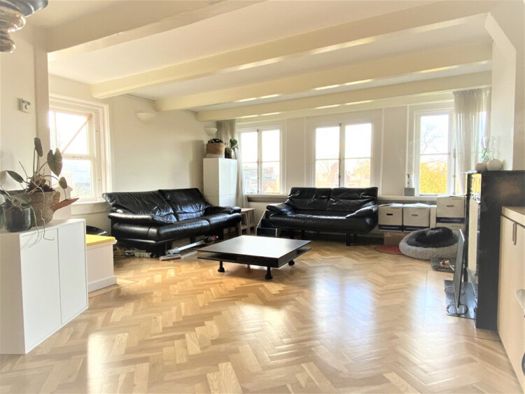 The 85m2 apartment is fully furnished and is peaceful and quiet, due to the wall, ceiling & floor insulation & double-glazing. The whole apartment is renovated recently, has fishbone parquet floors and is very light. The apartment contains: A living area with an antique working chimney and a spectacular 3 window view on the canal, a dining area and a modern and fully equipped kitchen at the back side, a separate toilet, a luxurious bathroom with separate shower & jacuzzi bathtub and a washbasin and a Washer and dryer. The large, 5 meter high bedroom contains a convenient writing desk. The icing on the cake is a small but very convenient 10 M2 terrace, which catches the sun practically the whole day.