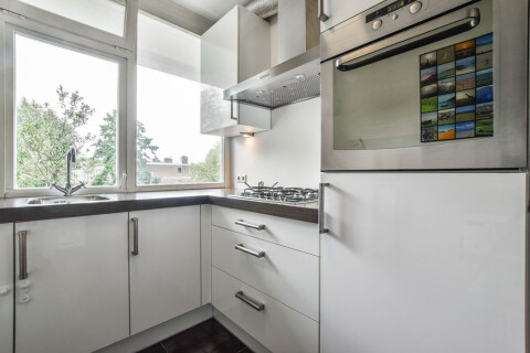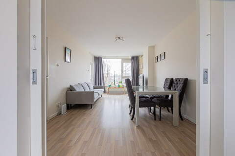Located in a quiet location and near the financial district (Zuidas), we find this very nice and furnished 2 bedroom apartment. It is part of a small-scale apartment complex and has 2 bedrooms, a separate modern kitchen, balcony with a view over the water and a handy storage room in the basement.