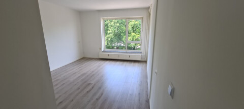 Nice new renovated 2 simular sized bedroom apartment with a beautiful view, a balcony, bathroom with shower, separate kitchen with all equipment, wood floor,elevator, trams top 25 meters, shops close , within 15 minutes in the centre. Heating cost plus € 50,00 (will be paid by owner to VVE)
