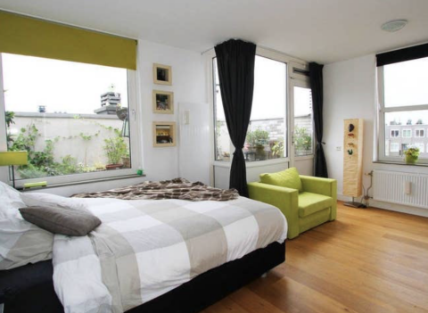 The 78m2 apartment is fully furnished, very spacious and situated in a safe and relaxing cosmopolitan district of Amsterdam Oud West. It has a modern and comfortable design offering you a great view over the entire city. Centrally located, close to Schiphol Airport (30min) and minutes away from the cities main attractions: the famous Vondel Park, Anne Frank Museum, de Hallen, Concert Gebouw etc, bike hire, bars, restaurants, main shopping districts, popular fruit & vegetable market (Ten Kartemarkt) and the main entertainment district Leidseplein. Tram 17 stops literally around the corner. The apartment contains everything one could possibly need. There are two balconies: front with open view over the city; back with a little green tea garden seating area. Complete with wooden floors, spacious living room & open modern kitchen, large bathroom with bath & walk-in shower. Bedroom –king size box-spring bed, single pull-out bed; living room - comfortable double pull-out sofa. Accommodates 4 people. The neighbourhood is gay friendly. The apartment is on the 4th floor and provides great views. Please note, while there is a wide staircase there is no elevator or lift in the building.