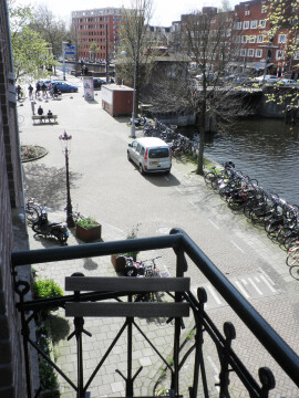 The place is located on the 2nd floor and has a nice view from the front balcony on the Kostverlorenvaart (canal) and it's boats!