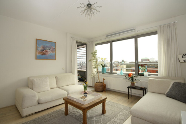Bij binnenkomst in het complex wordt u verwelkomd in een ruime ontvangsthal met hoog plafond. De lift brengt u naar de vierde verdieping. Via een kleine galerij aan de achterzijde bereikt u de woning.