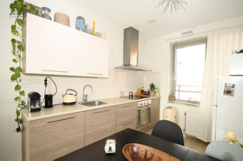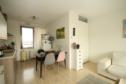 De woning is licht afgewerkt. Er is een open keuken met diverse apparatuur. De koelkast is vrijstaand. Het balkon is zowel bereikbaar vanuit de woonkamer als vanuit de slaapkamer. Vanaf het balkon heeft u vrij zicht over de omgeving.