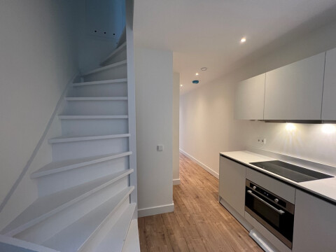 On the second floor is the living room with half open kitchen with all desirable built-in appliances and a separate toilet.