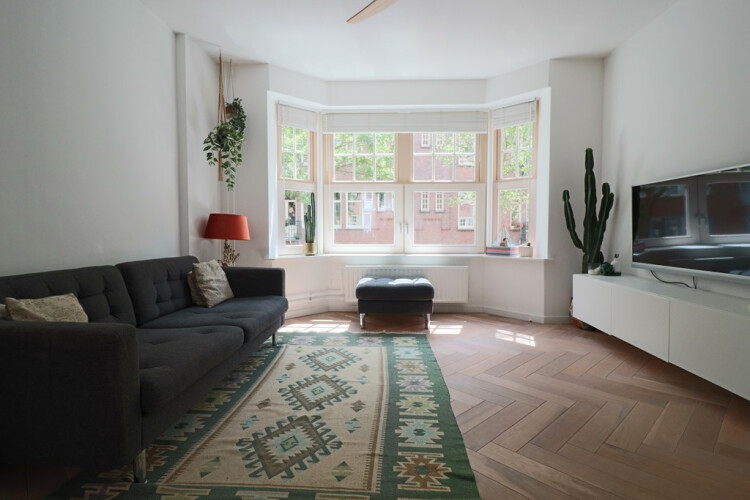 Nice and bright 3 bedroom apartment on good location in Amsterdam East. This furnished apartment is perfect for a small family with 1 or 2 children, or for a couple who are working from home. The 2 smaller bedrooms can also be used as home offices / guest rooms. The layout is very smart, with a lot of functional space. Next to the kitchen is the sunny balcony with nice greenery in front. At the ground floor at the back of the apartment is a private storage box available.