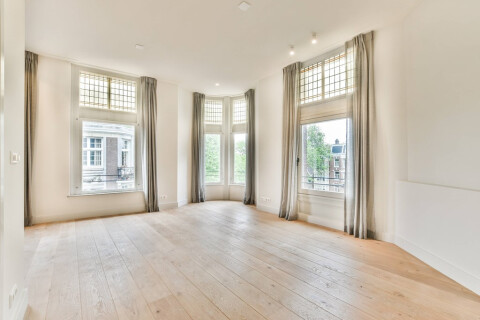 The luxurious kitchen, is equipped with all needed built-in appliances (Quooker and Miele appliances) and an induction hob. Countertop is made of stone and all cupboards are customized to the space. The high ceiling (3.20 meter!) and beautfiful curtains makes the apartment even more luxurious and spacious then it already is.
