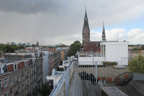 Ideal 2-bedroom apartment for rent in the popular area 'de Pijp’ in Amsterdam. Located on the 4th floor reachable by stairs. The apartment is located close to bars, restaurants, shops and supermarkets and easy to reach by public transport and car. The apartment offers an amazing 30m2 roof terrace.