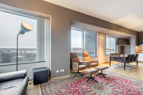 3-room apartment of approximately 114m² on the 18th floor. A famous international designer specialized in interior architecture (branded and customized furniture only). It has a breath-taking view over the city in the super luxury New Amsterdam residential tower. The apartment is located in the modern and one of the most expensive areas of Amsterdam.