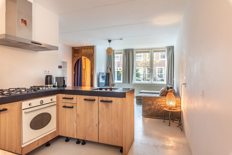 Modern 63m2 one-bedroom ground floor apartment with garden, situated in the ‘Indische buurt’ in the east of Amsterdam with plenty of shops and restaurants around the corner. Located within walking distance from the beautiful Flevopark, all kinds of public transport just a stone’s throw away and easy access to the highway A10.