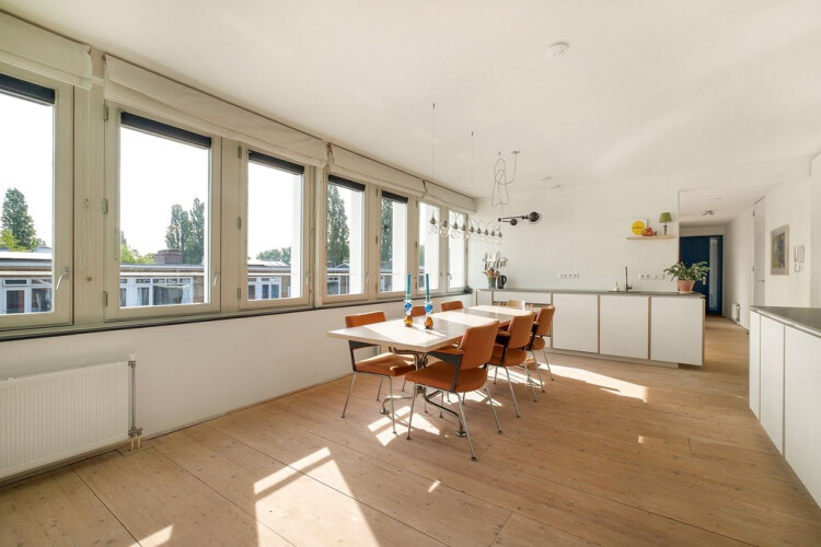This lovely cozy 4 bedroom apartment is located centrally in the quite and wide street in Bos en Lommer, within walking distance of the Erasmus park, cozy restaurants and shops on the Bos en Lommerplein. In addition, a few minutes away are the Westerpark, Westergasterrein and of course the Jordaan where you can go for culture, relaxation and nice restaurants. There is good accessibility by public transport, Amsterdam Sloterdijk station is approximately 10 minutes by bike. The ring A10 can be reached within a few minutes by car. The center of Amsterdam can also be easily reached by bike in about 15 minutes.