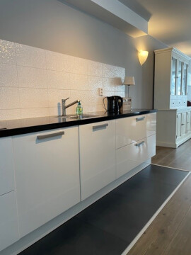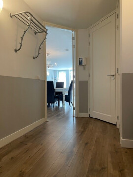 On the first floor you have your private entrance. Via the internal staircase you reach the apartment that lies at the back off the building. In the spacious hallway you have a private toilet, a vestiaire and access to the enormous livingroom with open plan kitchen (almost 60m2!). It is quiet and filled with light because of the windows in front (looking at the atrium) and the back (overlooking the inner garden).