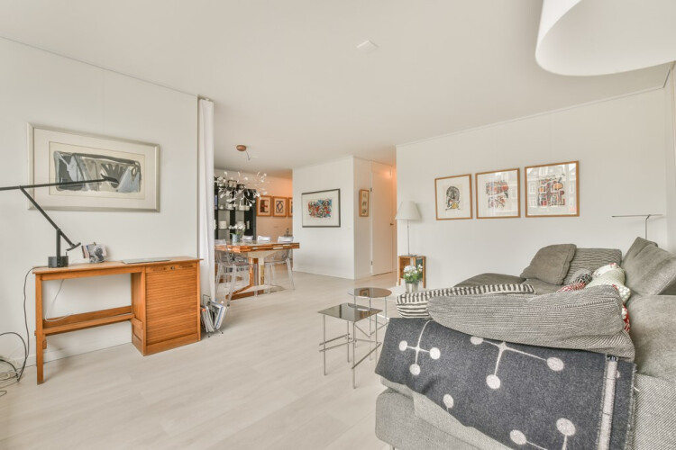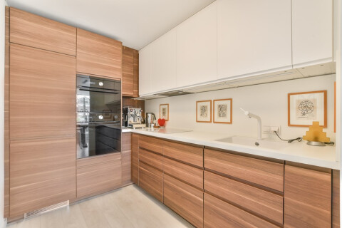 You enter the building via a communal entrance and head up to the first floor (either via the stairs or elevator). You enter the home into the hallway which gives access to all rooms in the house. The kitchen is fully equipped with all high-end appliances and has a semi-open layout with the living room and dining room area.