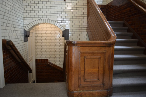 Gemeenschappelijke entree op de begane grond. Voordeur op de 1e verdieping: