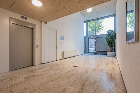 Gemeenschappelijke entree met lift en trappenhal. Tevens bevinden zich hier de aparte berging en toegang tot de parkeergarage.