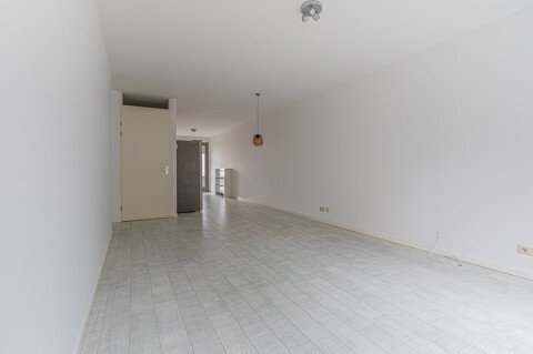 Entree op de 2e verdieping, hal met toilet en berging met wasmachine en droger, ruime woonkamer met open keuken (v.v. diverse inbouw apparatuur) , twee goede slaapkamers, badkamer met inloopdouche en luxe wastafel. Balkon op de galerij (binnenplaats) voor het appartement.