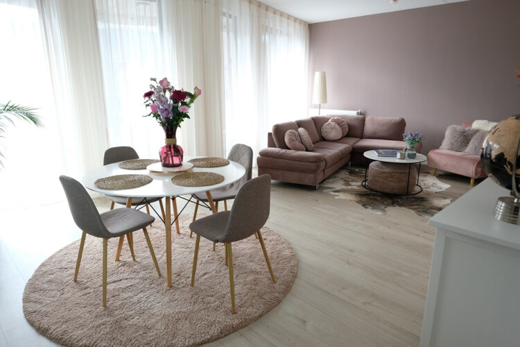This 82m2 apartment comprises two bedrooms, an open-plan kitchen and a large living room, a luxe bathroom with soak tub and walk in shower, as well as a large storage room. There is an additional 10m2 storage room downstairs which can be used for bikes, etc.